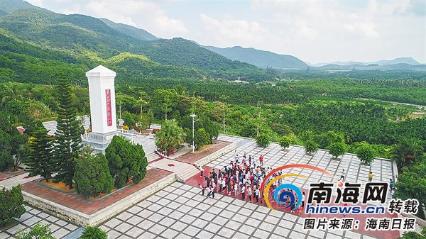 走進位于萬寧市和樂鎮六連村的六連嶺革命根據地紀念園,園內松柏蒼翠。拾級而上,呈方形塔狀的六連嶺烈士紀念碑矗立眼前,莊嚴肅穆,“革命烈士永垂不朽”8個大字鐫刻其上,銘記六連嶺的2000余位烈士英魂。