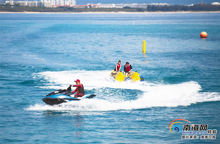 ?近日,游客在三亞蜈支洲島景區體驗水上飛人項目。武昊 供圖