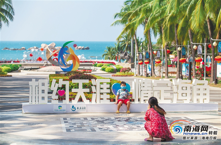近日,游客在三亞天涯海角景區游玩并拍照留念。武昊 供圖