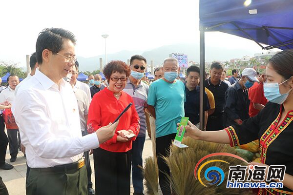 活動現場,昌江縣委書記黃金城帶頭購買扶貧農產品。