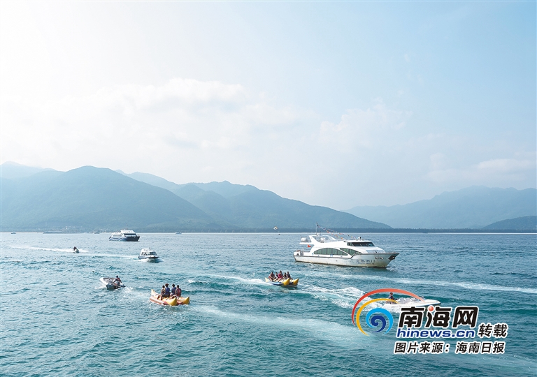 在陵水分界洲島旅游區(qū),各種海上游樂(lè)項(xiàng)目受到游客青睞。 武昊 攝