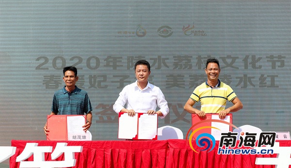 南海網(wǎng)、南海網(wǎng)客戶(hù)端、南國(guó)都市報(bào)陵水4月26日消息(記者 胡麗齊)4月26日上午,2020年陵水荔枝文化節(jié)在隆廣荔枝種植基地開(kāi)幕。活動(dòng)現(xiàn)場(chǎng),上百位客商來(lái)到現(xiàn)場(chǎng),與陵水荔枝種植企業(yè)和種植大戶(hù)溝通交流、開(kāi)展合作,各電商企業(yè)與種植荔枝的貧困戶(hù)現(xiàn)場(chǎng)簽訂了購(gòu)銷(xiāo)合同。據(jù)統(tǒng)計(jì),當(dāng)天現(xiàn)場(chǎng)簽約訂單金額3.2億元,訂單量達(dá)2萬(wàn)噸,其中涉及貧困戶(hù)1200多戶(hù),訂單金額約7000萬(wàn)元。