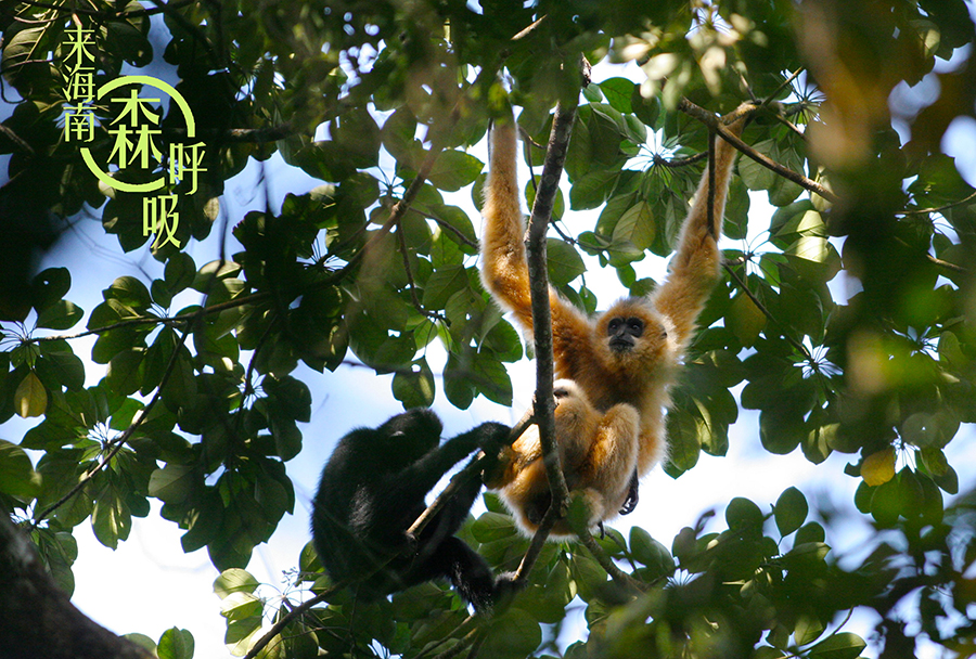 資料圖:海南霸王嶺國家級自然保護區雨林中歇息的長臂猿。海南日報記者 蘇曉杰攝