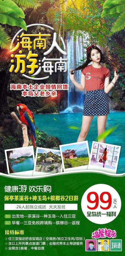 天恒旅業(yè)營銷中心總監(jiān)張惟惟介紹,海南旅游市場受疫情影響較大,為迎接中國旅游日,滿足本島居民的出游需求,該公司推出“健康游 歡樂購——海南人游海南”活動,涵蓋2條價格優(yōu)惠的旅游線路。“保亭茶溪谷+神玉島+檳榔谷2日游,呀諾達+西島+水稻公園2日游,2條線路都是每人99元團費,全島統(tǒng)一福利價。”張惟惟告訴記者,新推出的旅游產(chǎn)品因行程豐富、價格優(yōu)惠,推出不久就成為“爆款”,吸引大批本地居民參與。