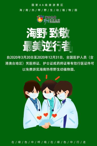 “每年的中國旅游日,我們景區(qū)都會向粉絲送福利,今年也不例外。”海南熱帶野生動植物園營銷總監(jiān)李冬林介紹,5月19日當(dāng)天,全國醫(yī)務(wù)工作者、貧困戶、勞動模范、先進工作者、現(xiàn)役軍人、殘疾人,憑相關(guān)有效證件可免費入園。