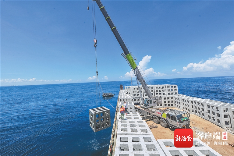 文昌馮家灣海洋牧場建設項目在投放人工魚礁。