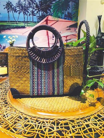 “海南作為旅游目的地,雖然有許多藤編、竹編或藤竹混編的各類手工制品,但仍缺少傳統與現代相結合的藤編類旅游商品,我希望能打造出更多具有海南地域特色的手工藤編產品?!睏钣颊f,在賦予黎族藤編更高的藝術價值的同時,她將藤編藝術與服裝、手包、裝飾品相結合,與海南黎錦、椰雕等海南文化元素有機結合起來。除了生產收藏陳設用的高端產品外,楊育萍還打造出藤編的手提包、耳環、臺燈、帽子、紙巾盒、掛畫等一系列兼具時尚性和實用性的旅游商品,為海南民間編織藝術增添新活力。