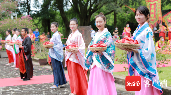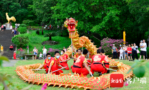 民俗大典于6月25日在海口火山口公園舉行,伴隨著喜慶的鑼鼓聲和開場(chǎng)表演,當(dāng)?shù)氐拈L(zhǎng)者和少女端著香包、粽子等吉祥物巡展,特色的民俗文化讓游客感受到了石山文化和風(fēng)情。活動(dòng)當(dāng)天,一曲輕快獨(dú)特的《彩云追月》古箏演奏節(jié)奏張弛有度,響徹山間。古箏奏罷,少女們身穿著漢服,誦讀經(jīng)典詩(shī)詞,將現(xiàn)場(chǎng)的氣氛推向高潮。