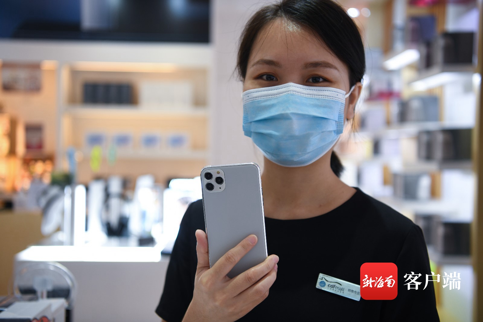 工作人員展示三亞國際免稅城剛上架的手機。記者 沙曉峰攝