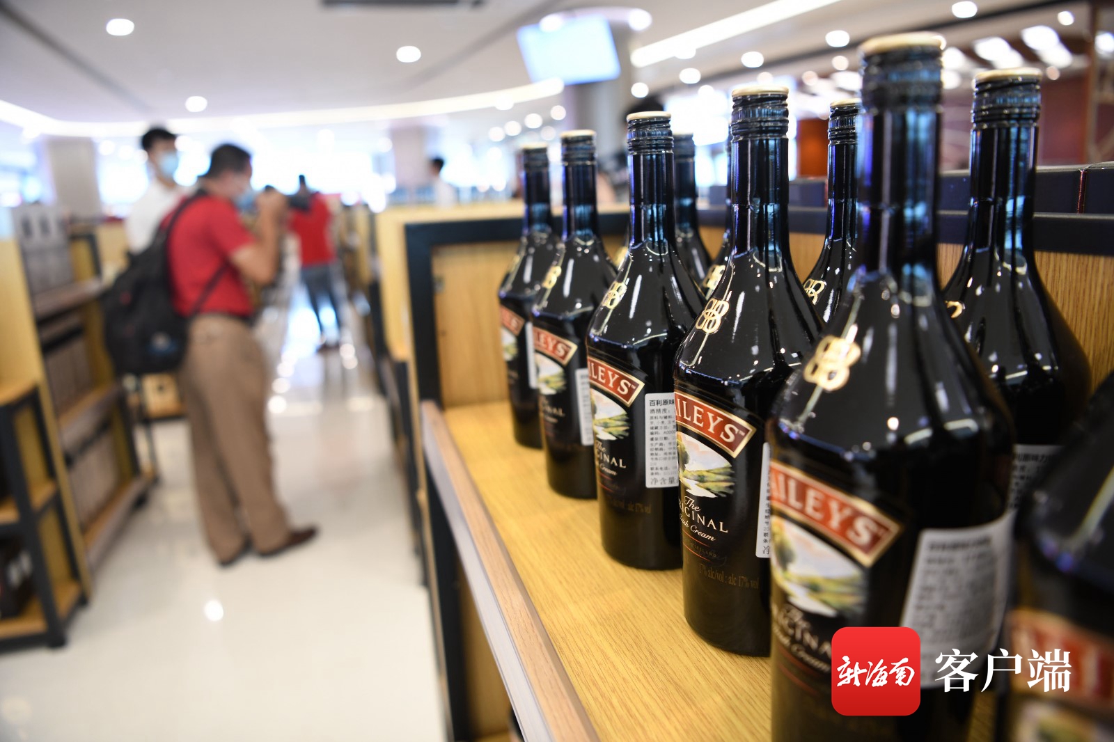 市民在三亞國際免稅城拍攝新增的酒類商品。記者 沙曉峰攝