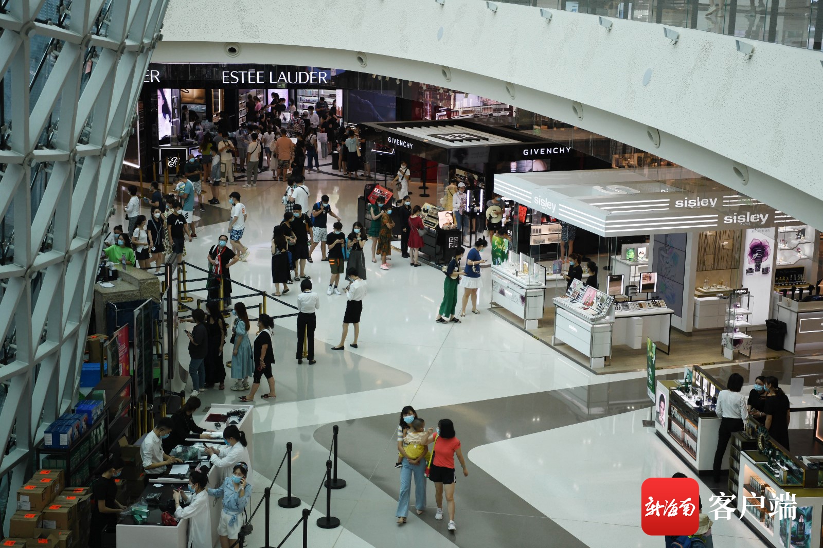 7月1日,游客在三亞國際免稅城排隊進場。記者 沙曉峰攝
