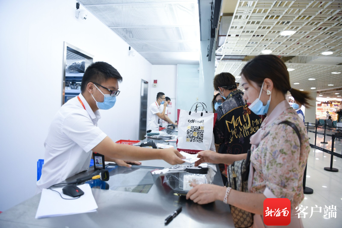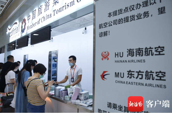 7月10日,三亞鳳凰國(guó)際機(jī)場(chǎng)新增的免稅提貨點(diǎn)啟用,旅客在辦理提貨業(yè)務(wù)。記者沙曉峰攝