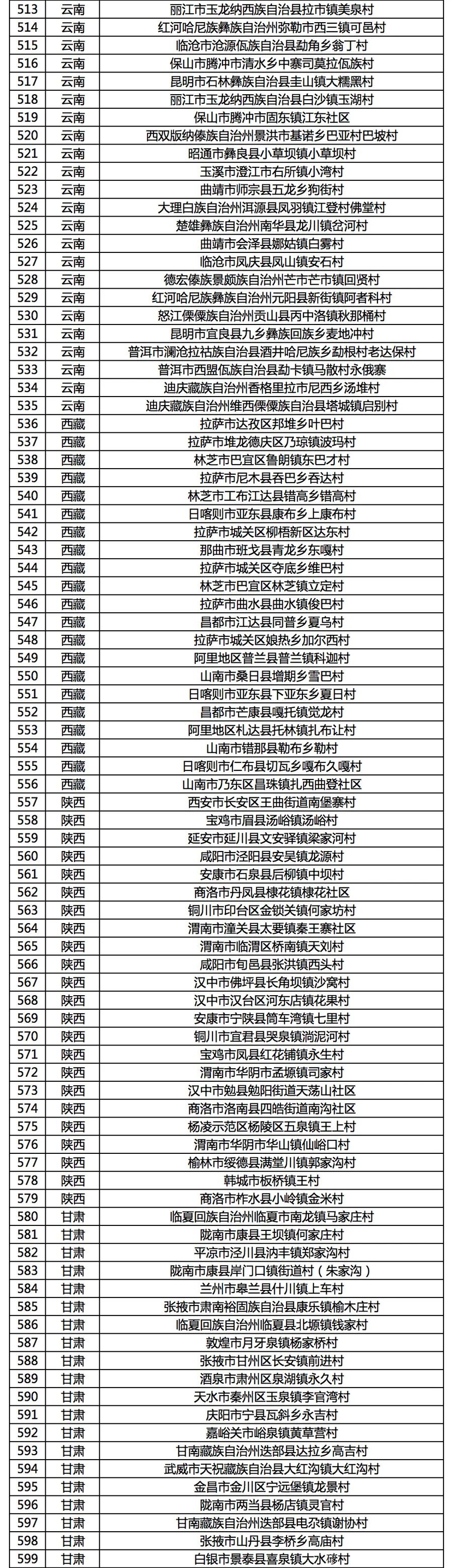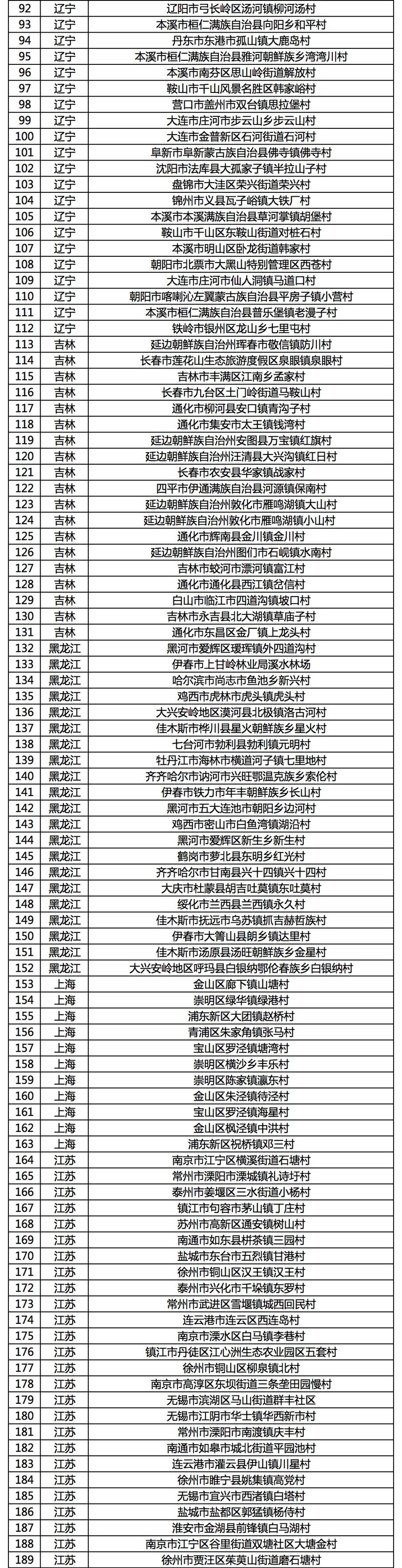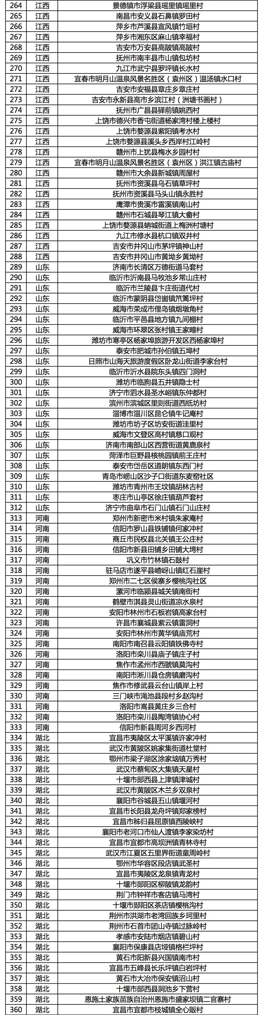 擬入選第二批全國鄉村旅游重點村名錄鄉村名單