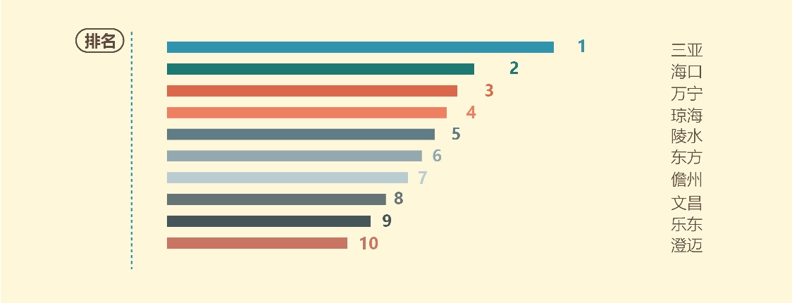 海南省內較受游客歡迎的目的地排名