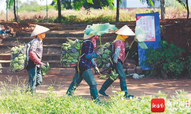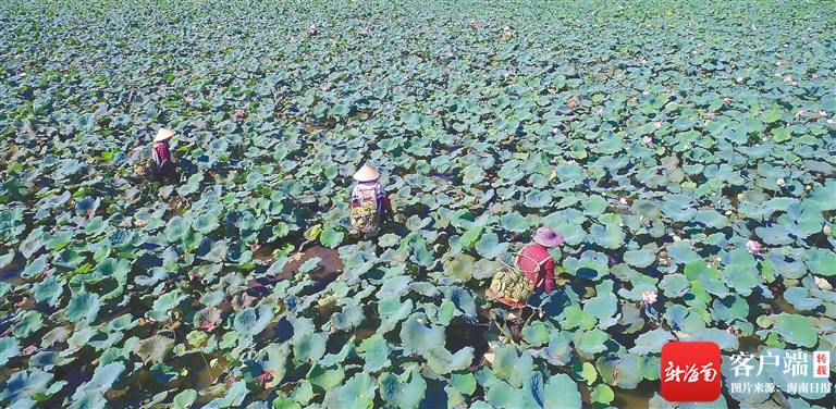 近日,在臨高縣皇桐鎮金波村,村民正忙著采蓮蓬,一派豐收景象。