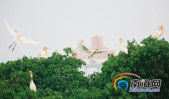 儋州那大鎮屋基村內的鷺鷥。儋州新聞中心供圖