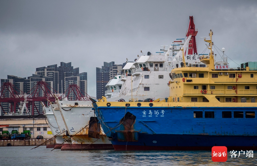 9月17日15時起瓊州海峽全線停航,圖為??谛阌⒏?。記者 劉洋 攝
