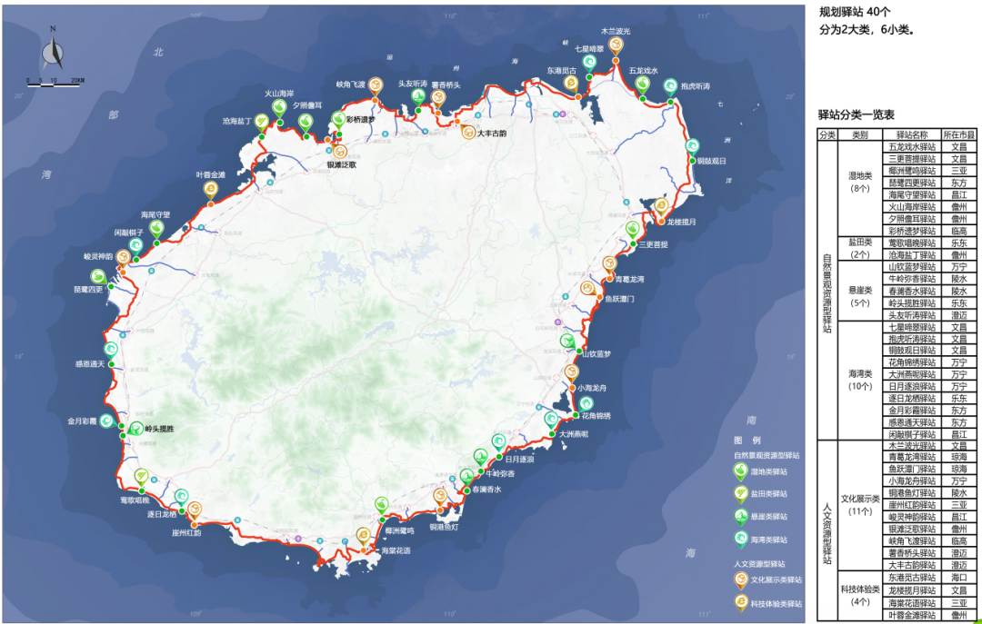 項(xiàng)目主線長(zhǎng)997.9公里,連接線長(zhǎng)442.7公里,貫穿海口、文昌、瓊海、萬寧、陵水、三亞、樂東、東方、昌江、儋州、臨高、澄邁沿海12個(gè)市縣和洋浦經(jīng)濟(jì)開發(fā)區(qū),有機(jī)串聯(lián)沿途約9類84段景觀區(qū)域、22個(gè)濱海岬角、25座燈塔、68個(gè)特色海灣、26個(gè)濱海潟湖、16片紅樹林、40個(gè)驛站、31家A級(jí)以上景區(qū)、21處旅游度假區(qū)、261處濱海名勝古跡。