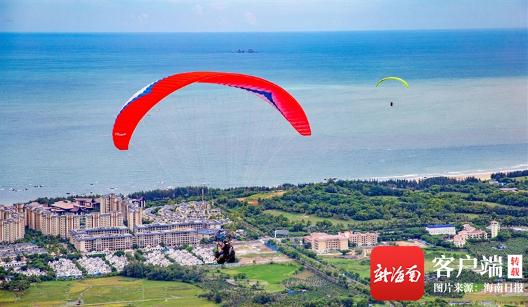 資料圖:從陵水紅角嶺國(guó)際滑翔傘飛行營(yíng)地起飛后可俯瞰原生態(tài)海岸線。海南日?qǐng)?bào)記者 封爍 攝