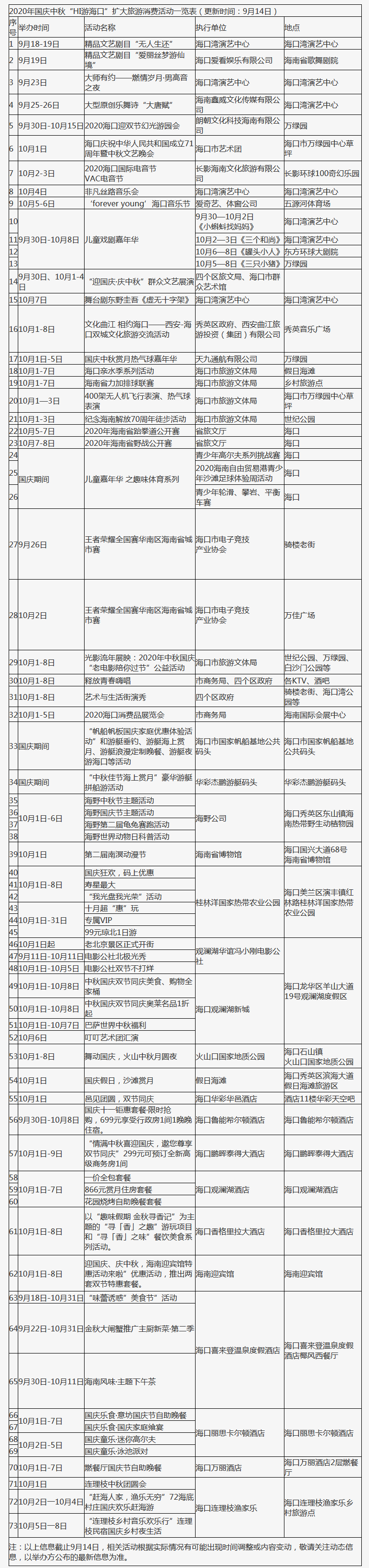 附:2020年國(guó)慶中秋“HI游海口”擴(kuò)大旅游消費(fèi)活動(dòng)一覽表