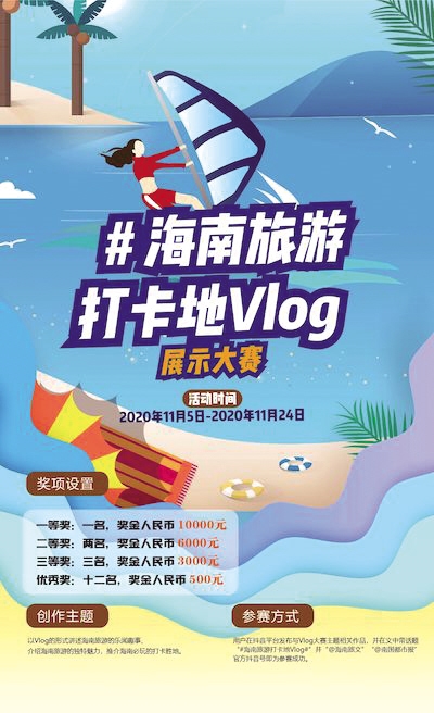 參賽者可以在抖音平臺發(fā)布與Vlog大賽主題相關(guān)作品,并在文中帶“#海南旅游打卡地Vlog#”并“@海南旅文”“@南國都市報”官方抖音號即為參賽成功。