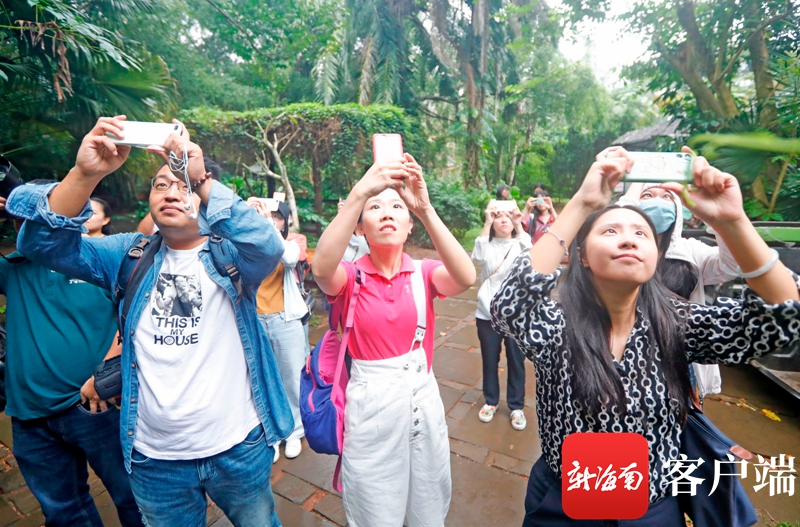 歡樂節(jié)觀摩采訪團一起走進海南野生動植物園打卡“熊貓兄弟”。記者 汪承賢 攝