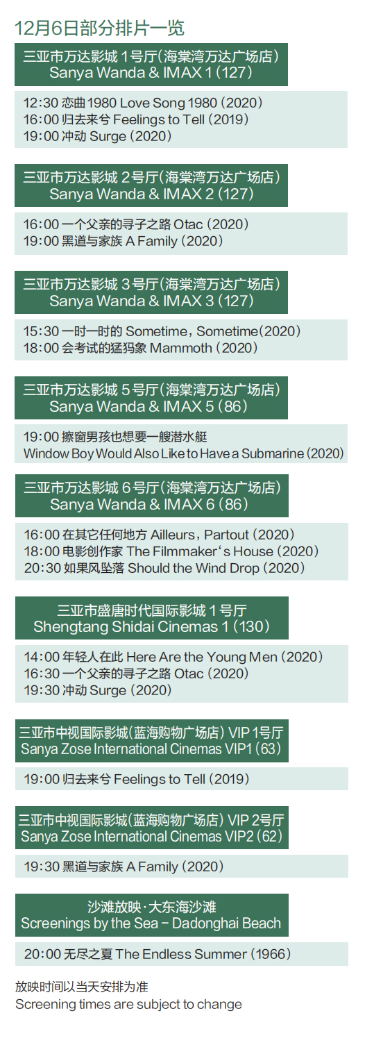 @影迷,海南島國際電影節排片表來了 12月2日晚正式開票