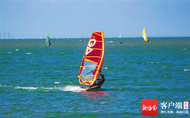 碧波萬頃的海面上,船影點點、桅帆林立,急速行駛的帆板正馭風破浪前行。今年國慶期間,來自上海的游客劉源陽和帆友在海上乘風破浪,體驗了一把出海的快感。“海口西海岸擁有回岸風,自然條件優越,非常適合帆板運動。”劉源陽說。