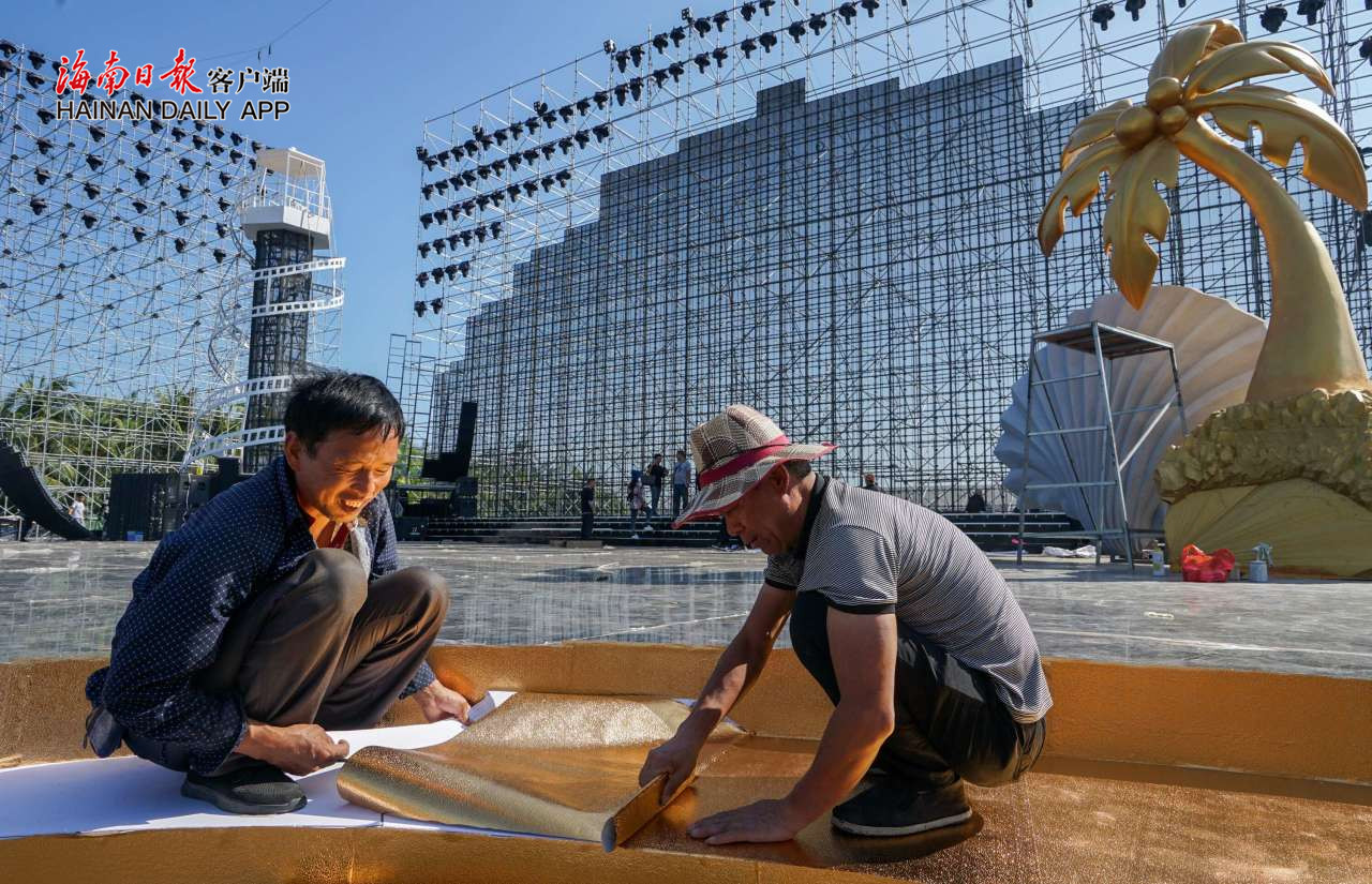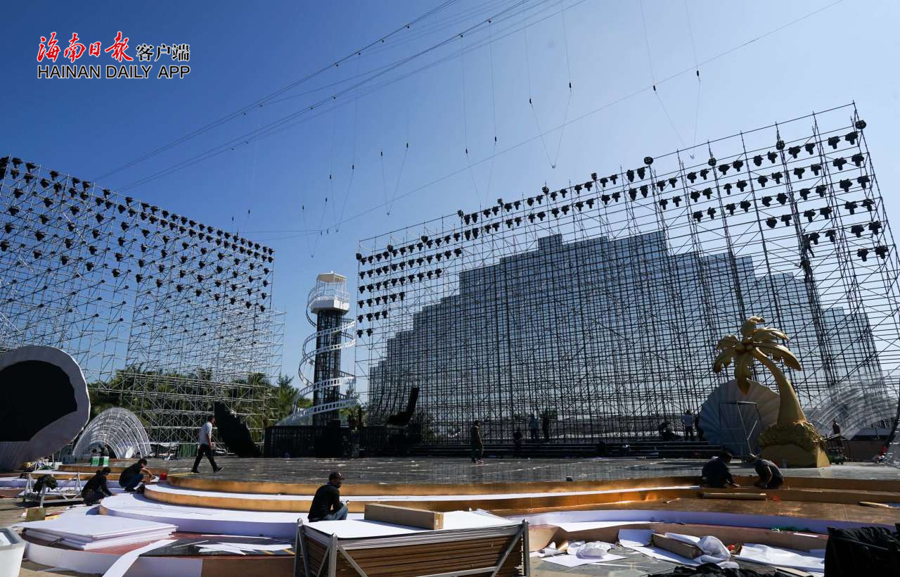 面朝大海,千燈閃爍,第三屆海南島國(guó)際電影節(jié)即將絢麗登場(chǎng)。今天上午,海南日?qǐng)?bào)記者走近三亞市海棠廣場(chǎng)看到,在海浪濤聲中,100多名工作人員頂著烈日施工,第三屆海南島國(guó)際電影節(jié)主會(huì)場(chǎng)搭建基本完成。