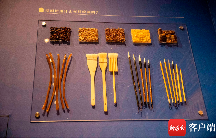現(xiàn)場(chǎng)展出的壁畫繪制的工具和顏料。記者 劉洋攝
