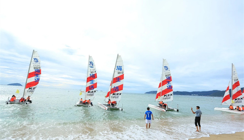 除了沙排賽,集競(jìng)技、娛樂(lè)、觀賞和探險(xiǎn)于一體的帆船賽也備受關(guān)注。“海生活杯”TOPCAT帆船賽共分為8支隊(duì)伍,由四家酒店和四家民宿組成,8支隊(duì)伍揚(yáng)帆起航,在碧海藍(lán)天中追逐“藍(lán)色之夢(mèng)”。