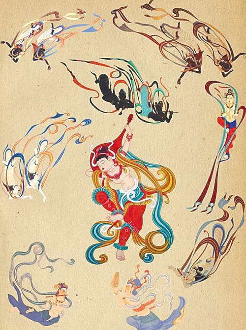 在佛教的“凈土勝地”中,音樂與舞蹈是不可或缺的要素。據(jù)統(tǒng)計(jì),在現(xiàn)存敦煌石窟中保留有舞樂題材的洞窟共有236個(gè),其中繪有各種類型的樂隊(duì)約500組,且大多伴有舞蹈場(chǎng)面;所出現(xiàn)的各種類型的樂器計(jì)有44種4500余件之多。在全世界的壁畫歷史中,就反映的樂舞數(shù)量之多、品類之豐富、時(shí)間跨度之長(zhǎng)而言,敦煌壁畫都是無(wú)與倫比的。