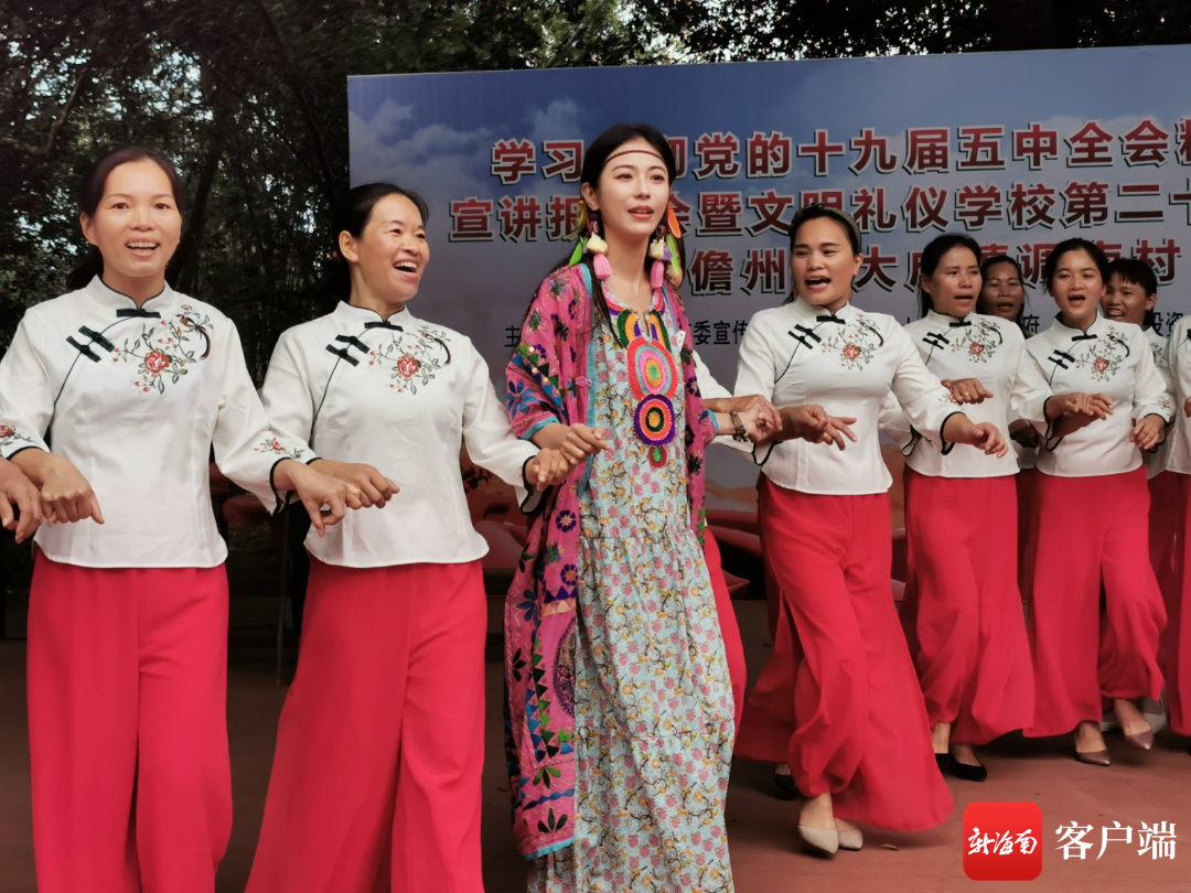 百萬粉量級旅游達人邵約倫與村民互動,學習儋州調聲。記者 李紹遠 攝