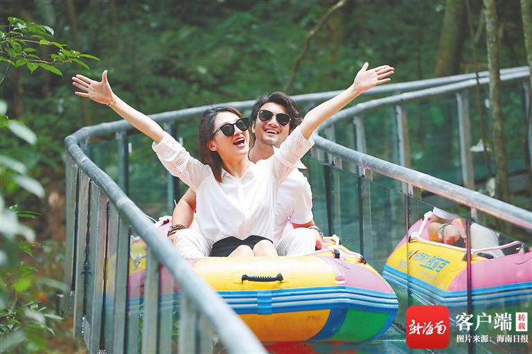 游客在瓊中百花嶺漂流。(景區(qū)供圖)