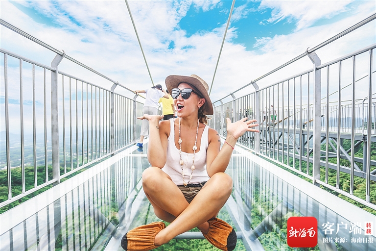 外國(guó)游客體驗(yàn)呀諾達(dá)景區(qū)高空玻璃棧道。 武昊 攝