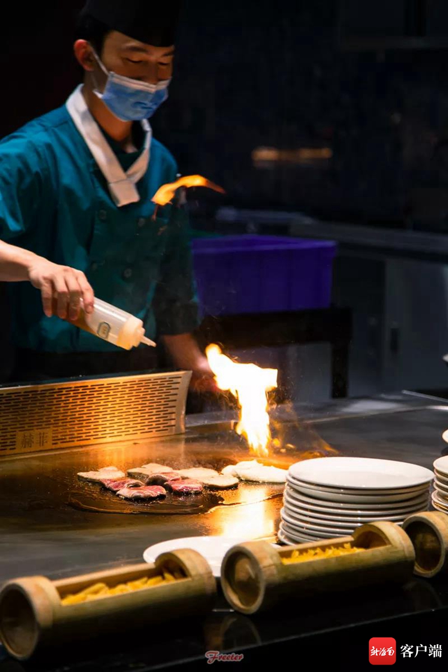 餐廳廚師正為顧客制作特色鐵板燒。飛特生活館供圖
