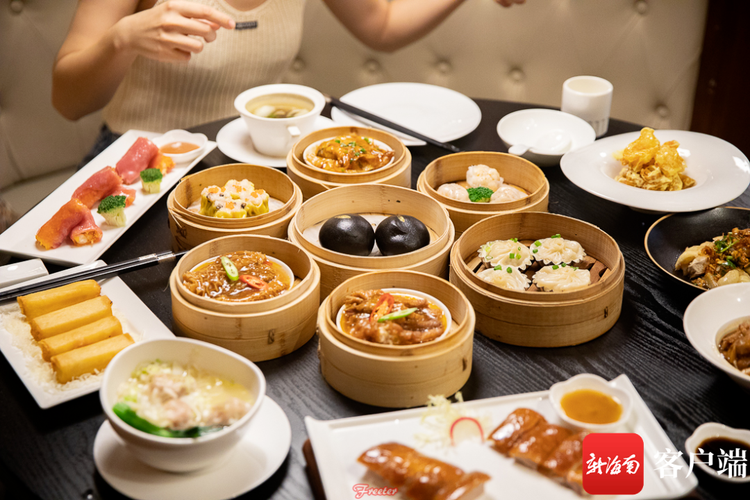 顧客在海口華彩華邑酒店·富臨中餐廳內吃粵式自助茶點。飛特生活館供圖