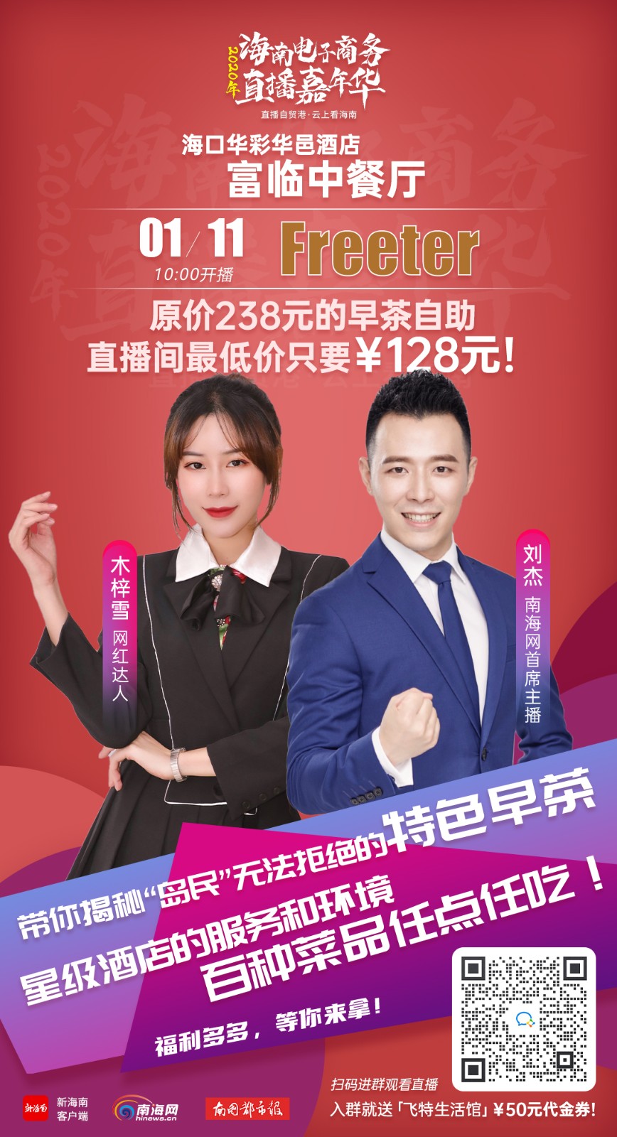 新海南客戶端、南海網、南國都市報1月10日消息(記者 吳興)一頓愜意的早茶能讓人開啟幸福的一天,到哪才能吃到超滿足的精致早茶?1月11日上午10點,南海網攜手飛特生活館推出系列探店直播第三站,來到??谌A彩華邑酒店·富臨中餐廳。南海網首席主播劉杰和網紅達人木梓雪將化身美食達人,帶大家走進餐廳,品嘗粵式點心,領略自助早茶的“魅力”。屆時,直播間還將推出多重優惠和開展抽獎互動,觀看直播的廣大網友可在“一飽眼?!敝械玫綄嵒?。