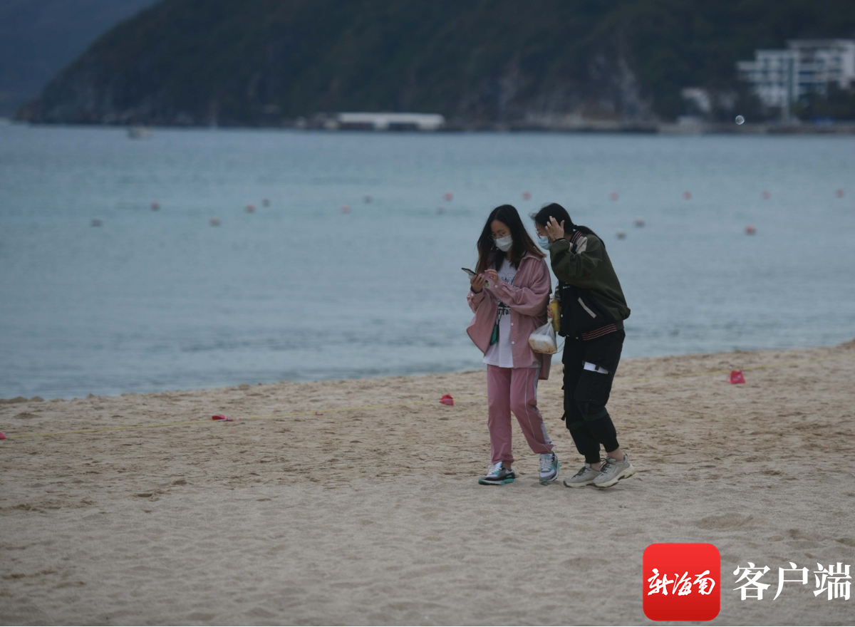 1月11日,穿羽絨服的游客在海灘上游玩。記者 沙曉峰 攝