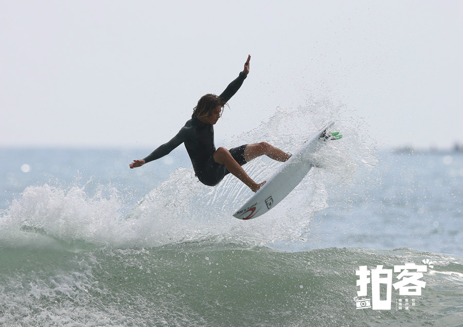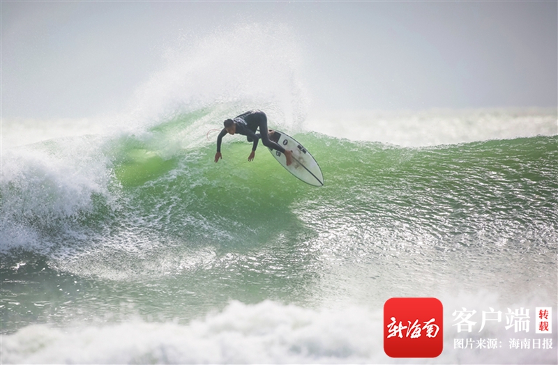 萬寧日月灣,比賽中的沖浪運動員。海南日報記者 袁琛 攝