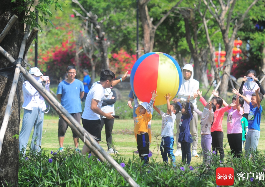 2月17日,市民在三亞鹿回頭濱海公園體驗互動游戲。記者沙曉峰攝
