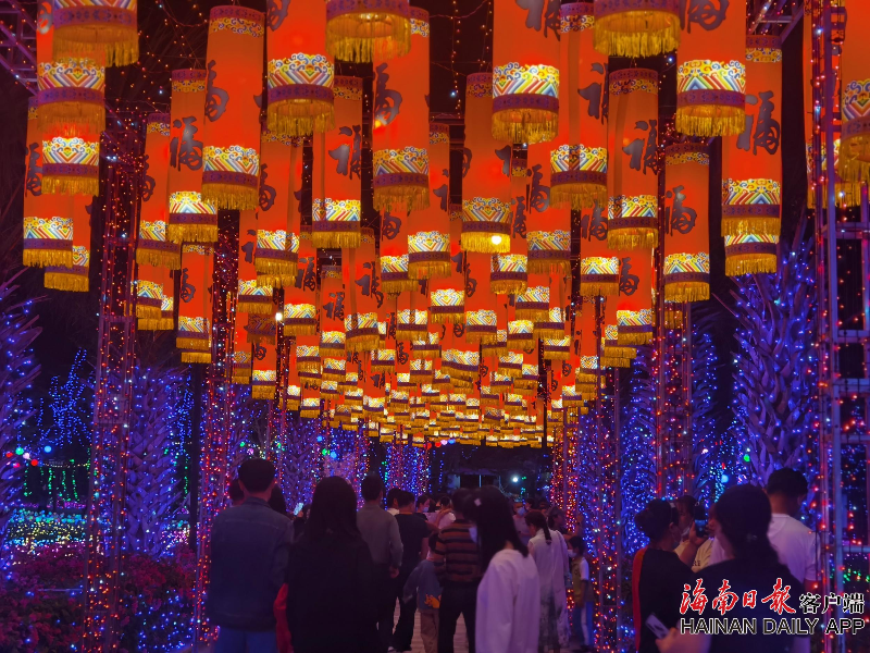元宵佳節賞花燈是中國的傳統民俗。不僅是三亞水稻國家公園,夜幕降臨,三亞鹿回頭濱河公園、海棠灣亞特蘭蒂斯等處的花燈也紛紛亮起,色彩炫麗、形態各異的花燈形成了一道亮麗別致的風景線,塑造出元宵夜的“不夜鹿城”。
