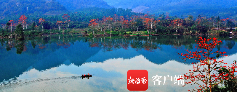 離開排岸村,驅車趕往尼下村,一睹尼下碼頭的“江畔木棉”。站上超大觀景臺,可見昌化江畔峰巒疊起,對岸的木棉紅一覽無余。如果清晨到此,薄霧縈繞,登船穿越薄霧,泛舟游江,兩岸巍巍青山,宛在畫中游,你也成了江上一景。