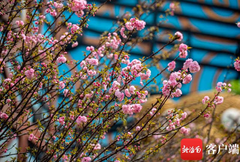 海口長影100環(huán)球奇幻樂園內(nèi)綻放的櫻花掛滿枝頭。記者 劉洋攝