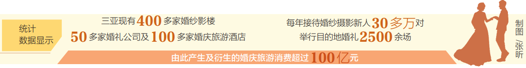 近年來,三亞不僅舉辦“中國婚禮行業高峰論壇”“中國天涯海角國際婚慶節”“三亞目的地婚禮博覽會”“全國戰疫英雄最美婚禮”等婚慶活動,同時練好“內功”,通過打造婚拍基地、豐富產品供給、加強從業人員培訓等方式,為前來鹿城的客人提供優質服務。