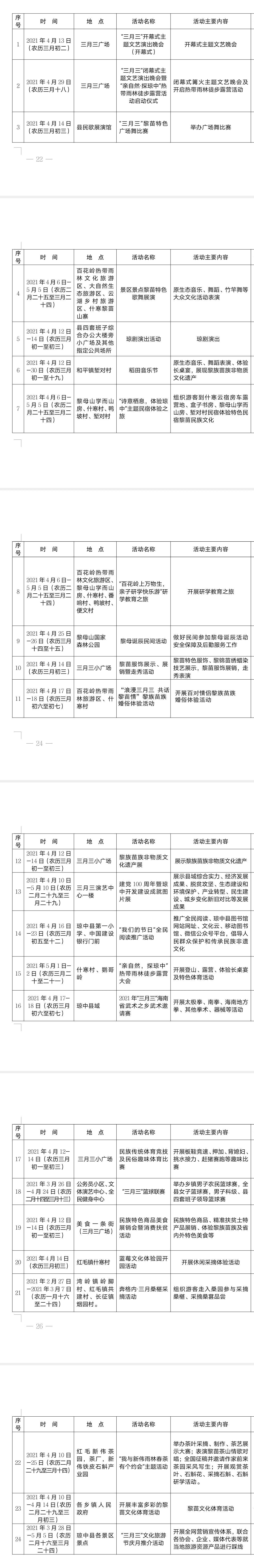 【附】瓊中將舉辦海南黎族苗族傳統(tǒng)節(jié)日“三月三”瓊中分會場暨文化旅游節(jié)慶系列活動,具體活動列表如下: