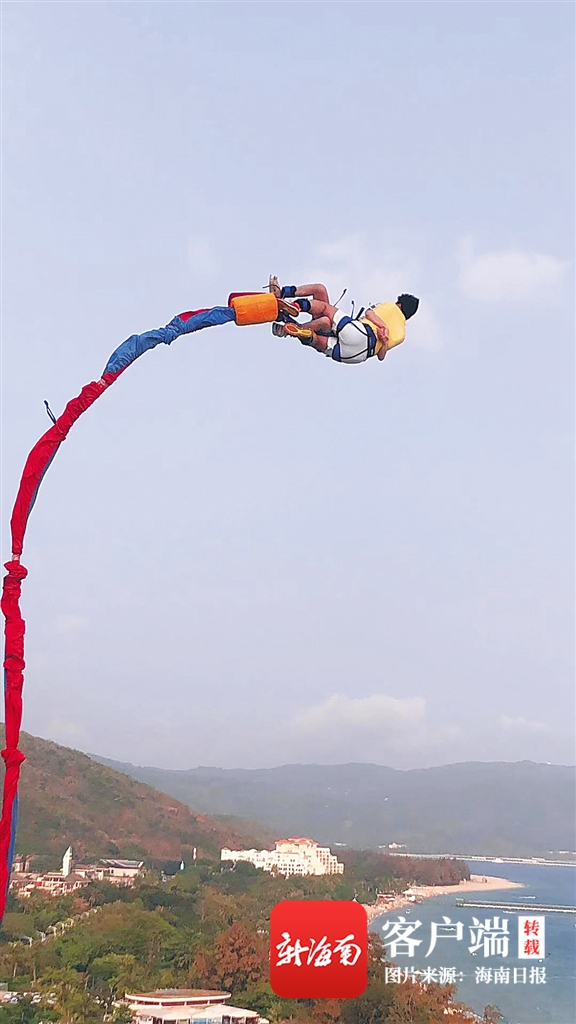游客在亞龍灣體驗蹦極。 (亞龍灣蹦極基地供圖)