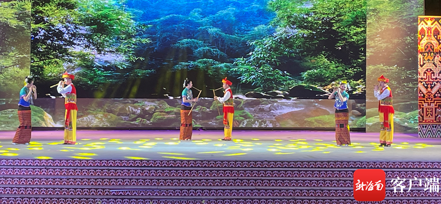晚會現場,黎族竹木樂器演奏《春之聲》、黎族舞蹈《錢鈴舞》、情景歌舞《黎家祝酒歌》、歌曲《我在黎寨等你來》,以及苗族舞蹈《平安舞》等黎族苗族風情濃郁的歌舞表演贏得了臺下觀眾的熱烈掌聲。此外,女聲獨唱《家鄉那大》、男聲合唱《故鄉儋州你好嗎》等朗朗上口的歌曲也極具穿透力,讓現場氛圍迅速升溫。