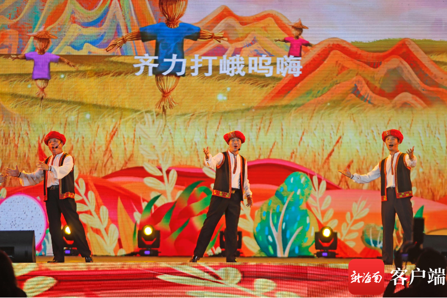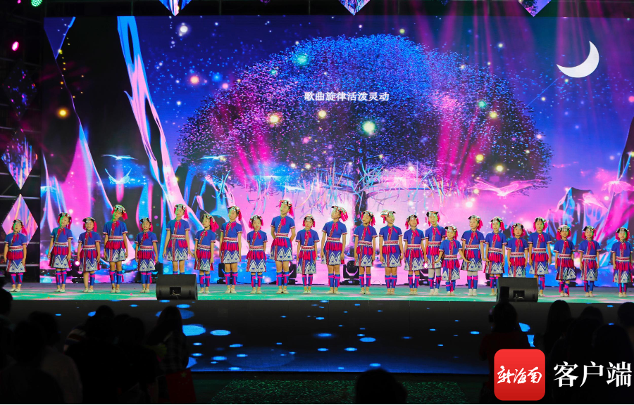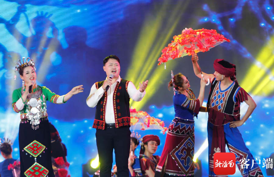 當晚,優美動聽的《美不過黎家三月三》歌曲拉開晚會主題的序幕。《噠啦光光當懷啥》《打硪歌》以及黎族舞蹈《鬧隆閨》、舞蹈婚俗表演《黎家婚禮》、苗族民歌《召龍請水》、黎族特色樂器表演《歡樂笮笆情》等極具少數民族風情的樂舞上演,絢麗多姿的民族之風撲面而來。