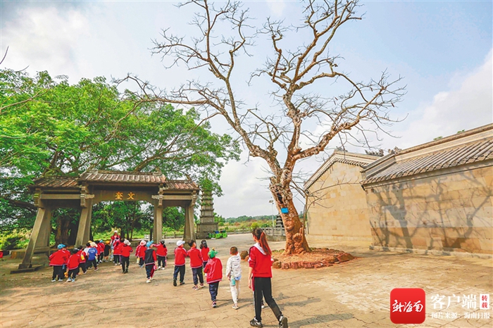 澄邁縣老城鎮金色童年幼兒園的小朋友們在老師的帶領下,走進古村落開展春游活動。海南日報記者 陳元才 攝